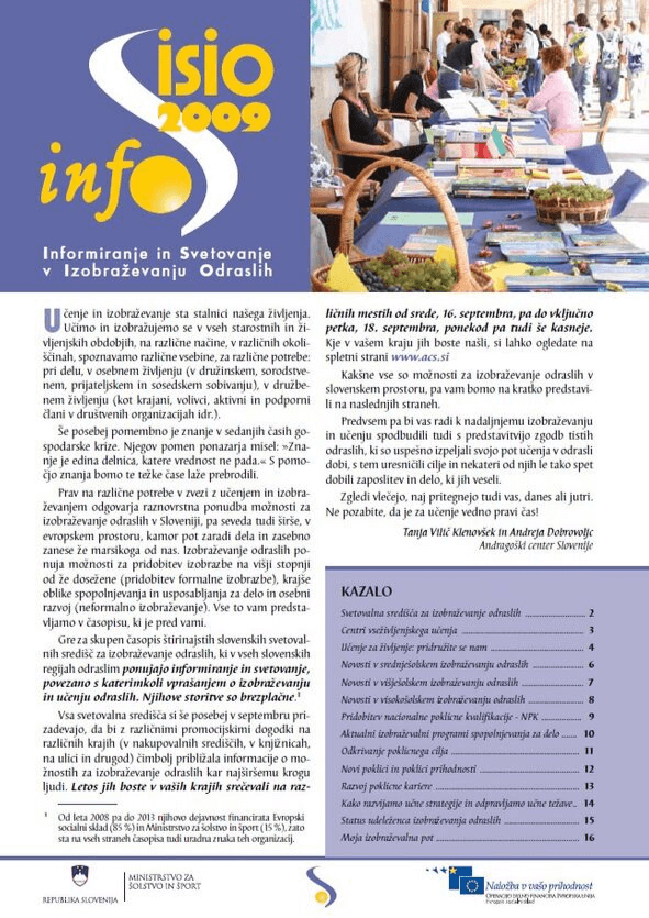 Časopis vsebuje aktualne informacije o različnih možnostih izobraževanja in učenja odraslih, vrednotenju že pridobljenega znanja in spretnosti ter za načrtovanje...