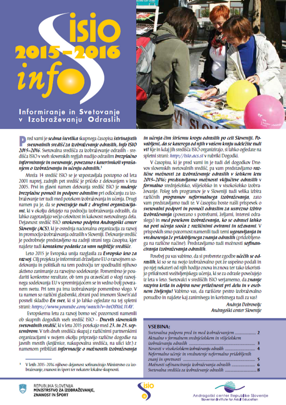 Ob Dnevih slovenskih svetovalnih središč (med 23. in 25. septembrom 2015) smo pripravili časopisa Info ISIO 2015–2016, v katerem so...