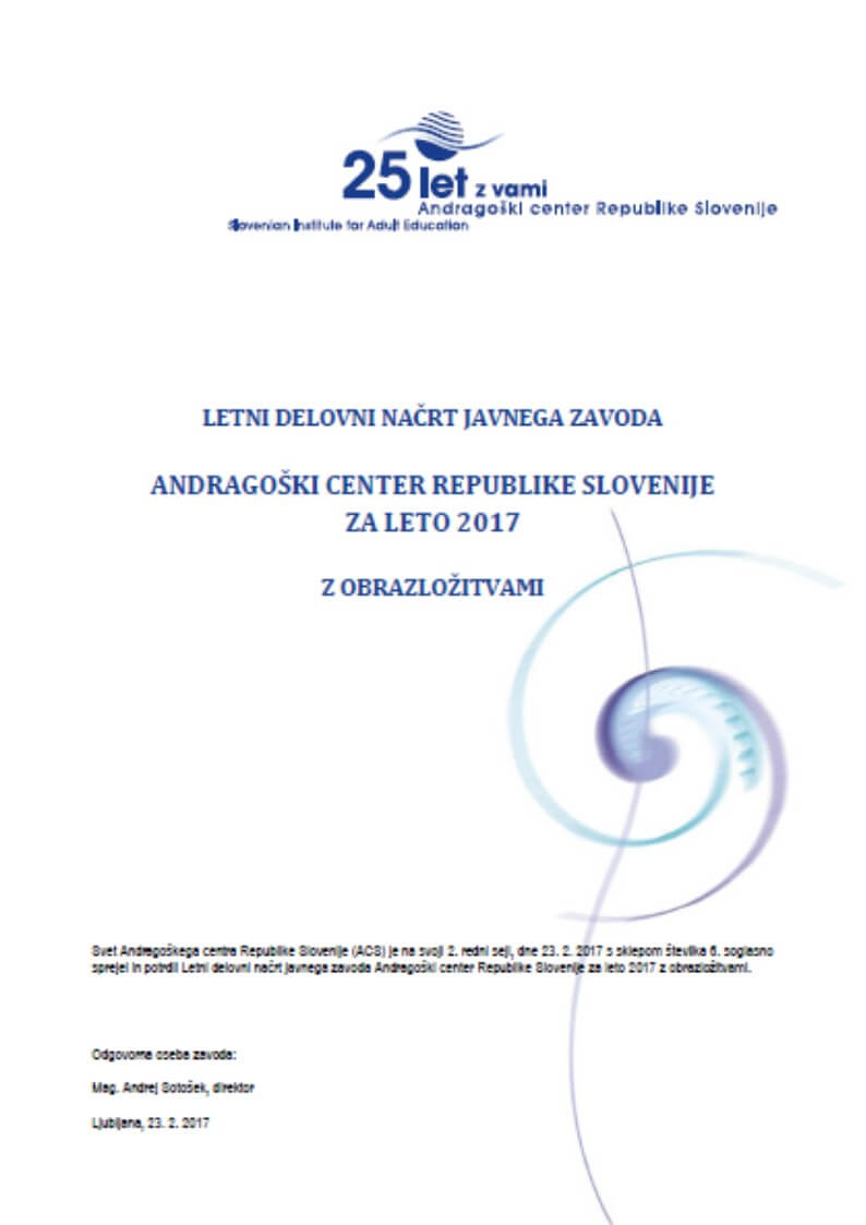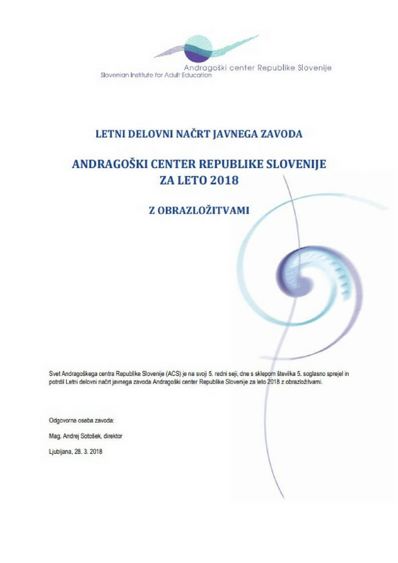 Program dela, kadrovski in finančni načrt Andragoškega centra Slovenije za leto 2022