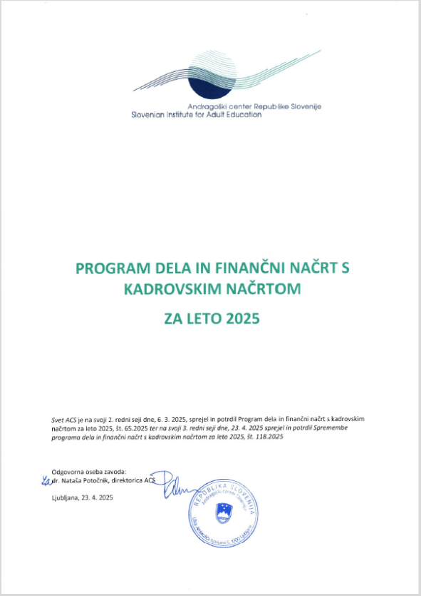 Programa dela in finančni načrt s kadrovskim načrtom Andragoškega centra Republike Slovenije (ACS) za leto 2021