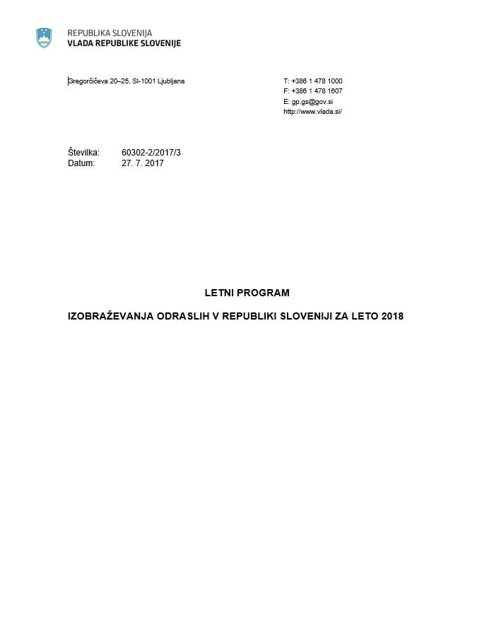 Letni program izobraževanja odraslih Republike Slovenije za leto 2018