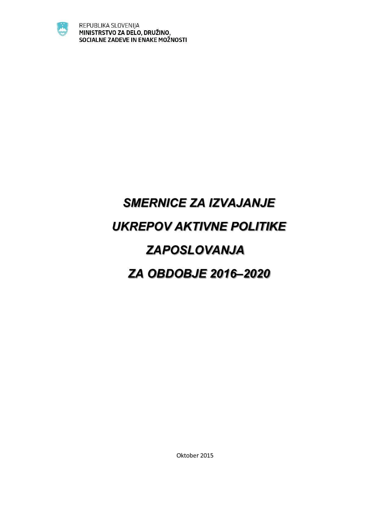 Smernice za izvajanje ukrepov Aktivne politike zaposlovanja za obdobje 2016–2020