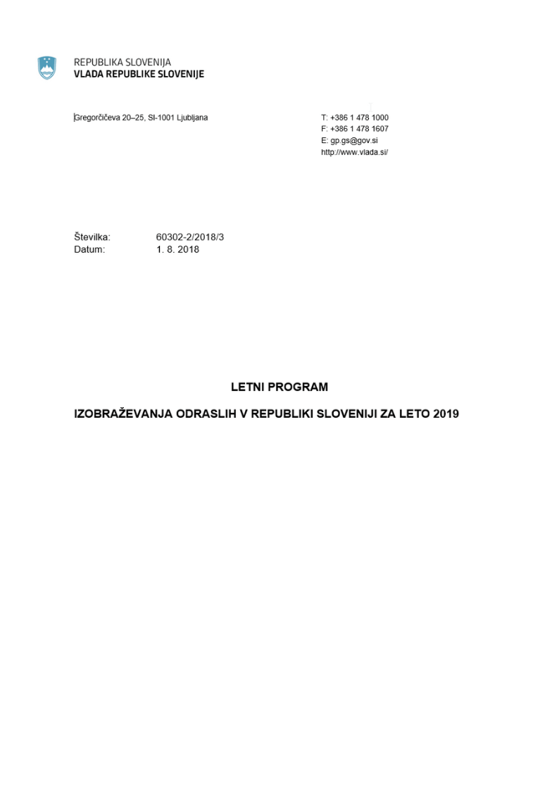 Letni program izobraževanja odraslih v Republiki Sloveniji za leto 2019