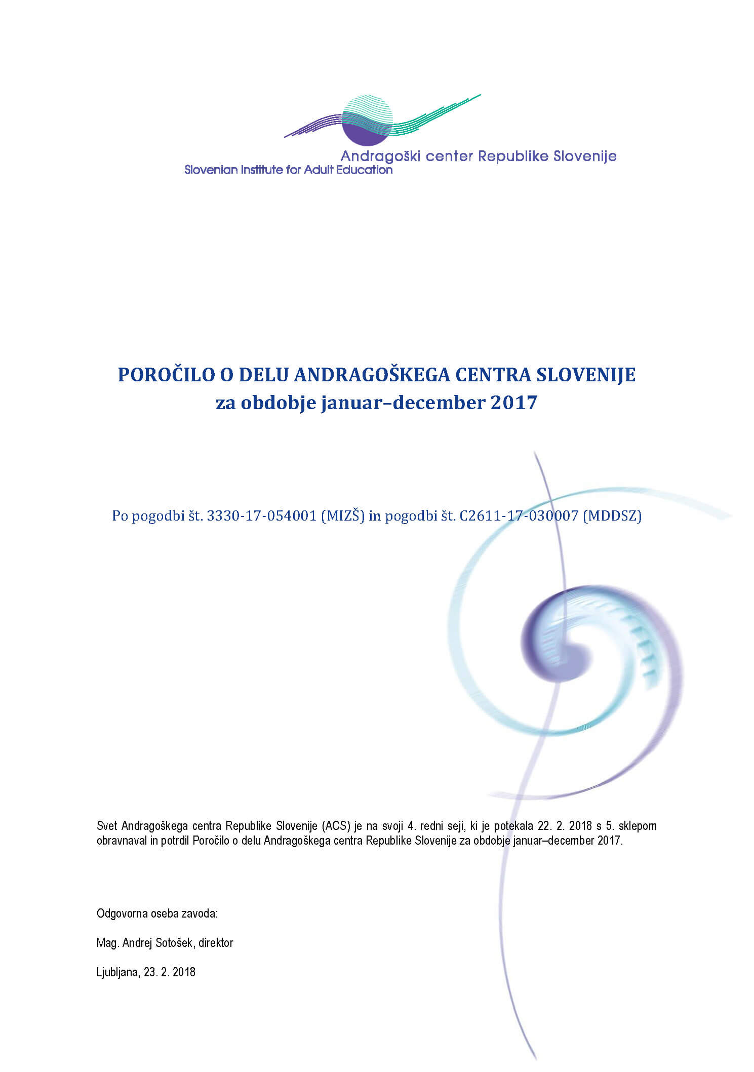 Poročilo o delu Andragoškega centra Slovenije za obdobje januar–december 2023