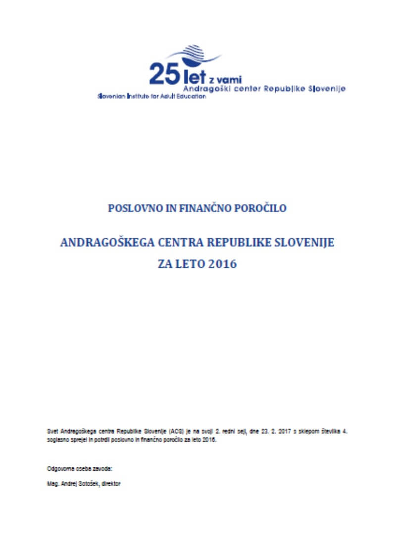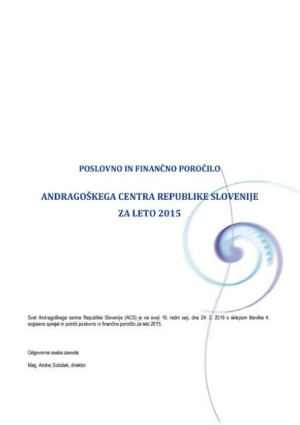 Poslovno in finančno poročilo Andragoškega centra Republike Slovenije za leto 2015
