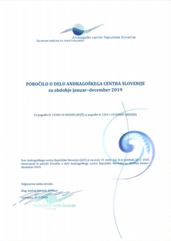 Poročilo o delu Andragoškega centra Slovenije za obdobje januar–december 2019