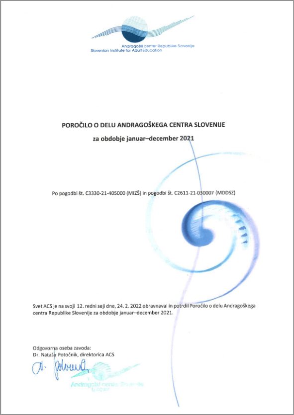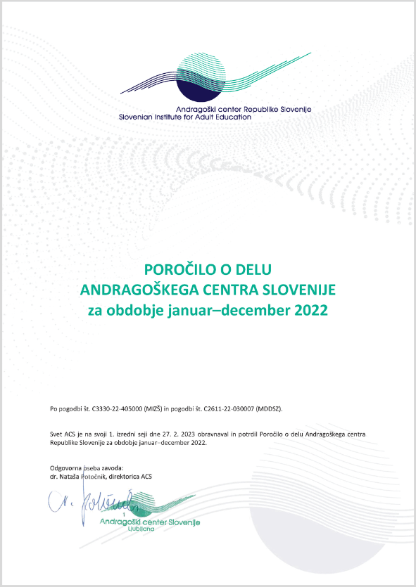 Poročilo o delu Andragoškega centra Slovenije za obdobje januar–december 2022