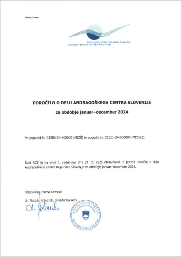 Poročilo o delu Andragoškega centra Slovenije za obdobje januar–december 2024