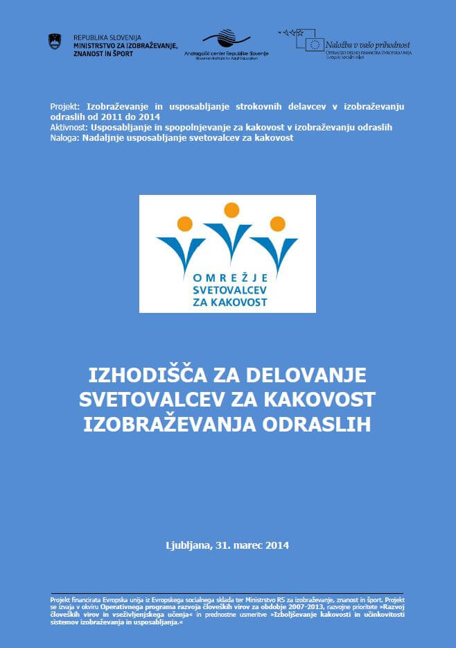 V letu 2014 je Andragoški center Slovenije skupaj z omrežjem svetovalcev za kakovost uskladil strokovna Izhodišča za delovanje svetovalcev za...
