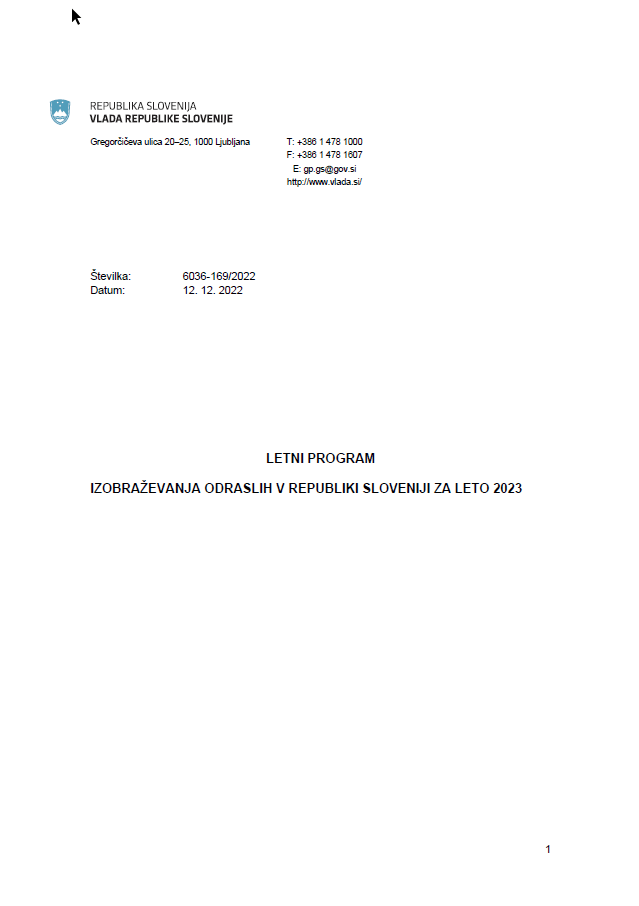 Letni program izobraževanja odraslih Republike Slovenije za leto 2023