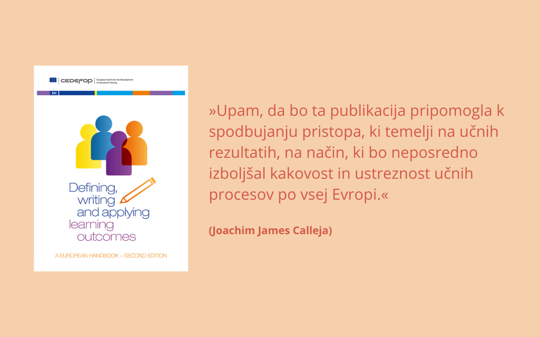 Cedefop je objavil drugo izdajo evropskega priročnika o učnih izidih z naslovom Defining, writing and applying learning outcomes. Namenjena je posameznikom in institucijam, ki dejavno sodelujejo pri opredeljevanju in pisanju učnih izidov v izobraževanju in usposabljanju.