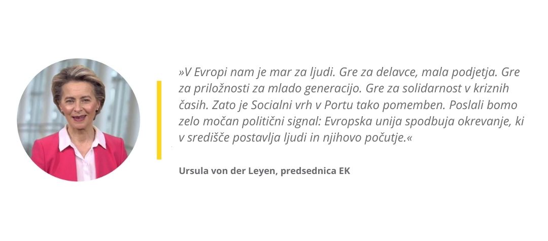 - maja 2021 bo konferenca na visoki ravni s socialnimi partnerji, ki se bo osredotočala na akcijski načrt za izvajanje evropskega stebra socialnih pravic,
