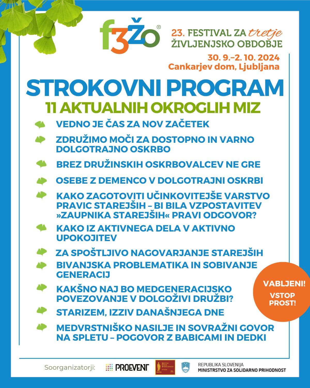 Festival za tretje življenjsko obdobje (F3ŽO) v Ljubljani je največja prireditev za starejše v Evropi. Predstavlja in uveljavlja prepričanje, da ima Slovenija velik ustvarjalni in delovni potencial v starejši populaciji prebivalstva. S festivalom želijo pokazati, kaj ta generacija zmore, kakšne so poti do njenega enakopravnega vključevanja v družbene tokove in programe, ki bodo starejše obravnavale kot enakopraven del prebivalstva.