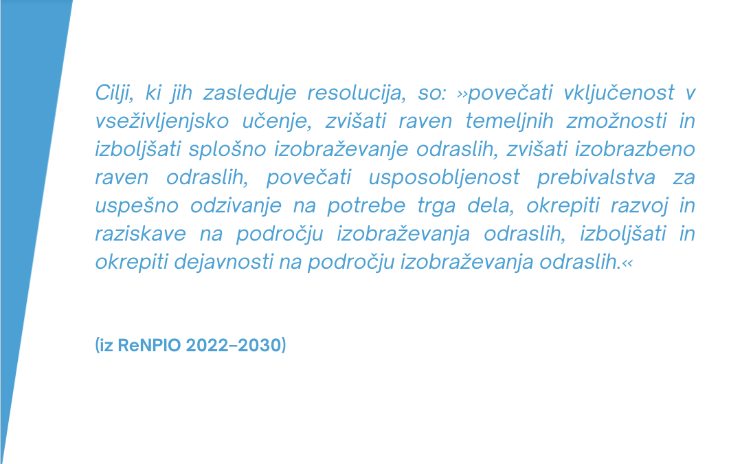 Včeraj so poslanci Državnega zbora (DZ) na svoji 30. seji potrdili Resolucijo o nacionalnem programu izobraževanja odraslih v Republiki Sloveniji za obdobje 2022 do 2030 (ReNPIO 2022–2030). Od navzočih 80 poslank in poslancev jih je za glasovalo 62, proti ni bil nihče.