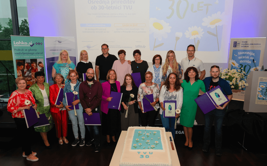 V četrtek, 15. maja, smo obeležili 30-letnico Tednov vseživljenjskega učenja (TVU) – vseslovenske pobude, ki že tri desetletja navdihuje in spodbuja vse generacije k učenju, osebni rasti in povezovanju. Dogodek je bil praznik učenja in poklon izjemnim posameznikom, ustanovam in skupinam. Slavnostno smo razglasili 12 regijskih prejemnikov priznanj ACS 2025.