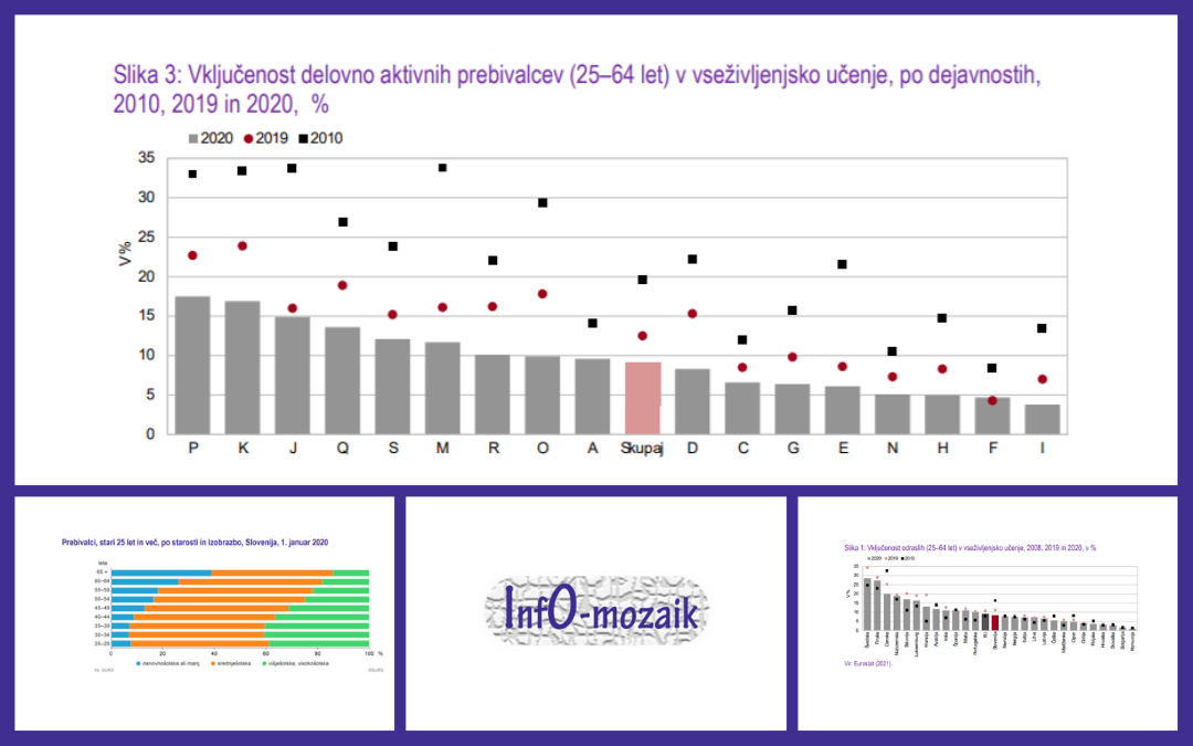 V zimskih mesecih se je na področju izobraževanja in učenja nabralo kar nekaj aktualnih informacij. Nekatere izmed njih smo predstavili v rubriki InfO-mozaik na spletni strani ACS, v kateri objavljamo aktualne informacije, statistične podatke, evropske kazalnike in predstavitve nekaterih ključnih področij izobraževanja in učenja odraslih.