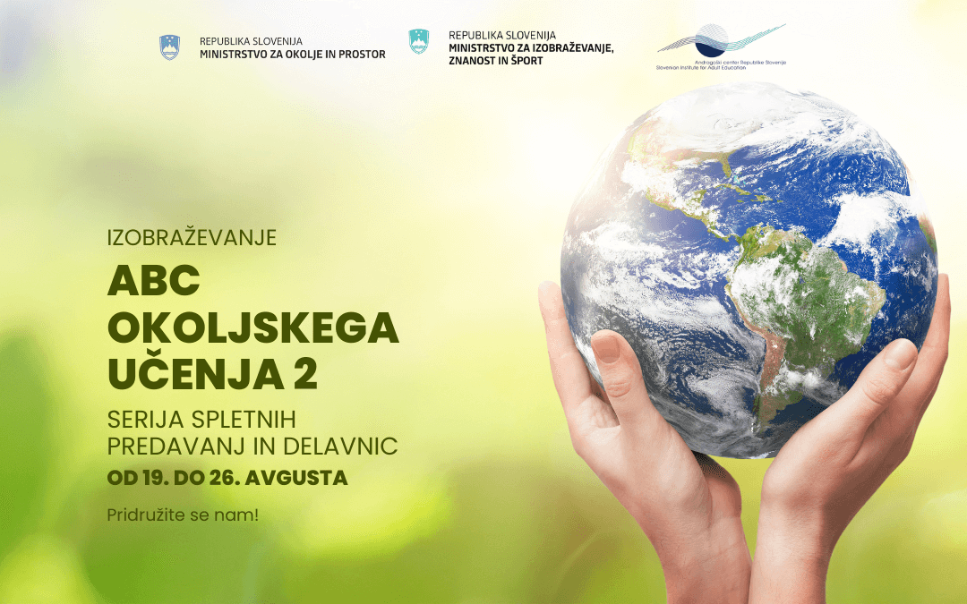 Ker je namen vprašalnika tudi spodbuda k upoštevanju podnebnih sprememb v delovanju vaše institucije (npr. spremenjen ekološki odtis, pozornost zelenim površinam v okolici stavbe, kjer delujete, vključevanju podnebnih vsebin v izobraževalno ponudbo itd.), naj vas in sodelavce ob tem povabimo na krajša brezplačna usposabljanja na daljavo, ki bodo na voljo pod naslovom ABC okoljskega učenja 2. Izpeljali jih bomo 19., 23. in 26. avgusta. Prijavite se lahko tukaj.