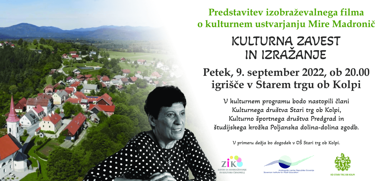 Predstavitev filma Kulturna zavest in izražanje bo v petek, 9. septembra 2022, ob 20. uri na igrišču v Starem trgu ob Kolpi.