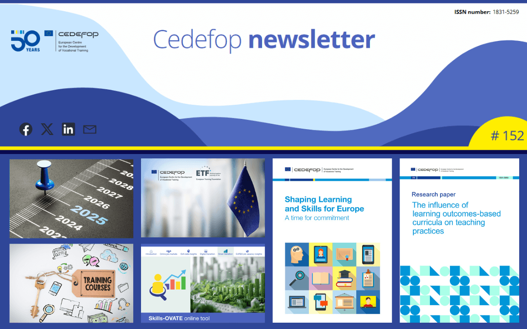Med novimi publikacijami izpostavljajo vizijo za prihodnost spretnosti (Shaping Learning and Skills for Europe), analizo razvoja politik poklicnega izobraževanja in usposabljanja v Evropi (Towards EU priorities in VET), raziskavo o vpliv učnih izidov na učne prakse v poklicnem izobraževanju in usposabljanju, tudi v Sloveniji (The influence of learning outcomes-based curricula on teaching practices) in programskem dokumentu, v katerem Cedefop določa svoje prednostne naloge in objavlja akcijski načrt za triletno obdobje do leta 2027 (Single programming document 2025-2027).