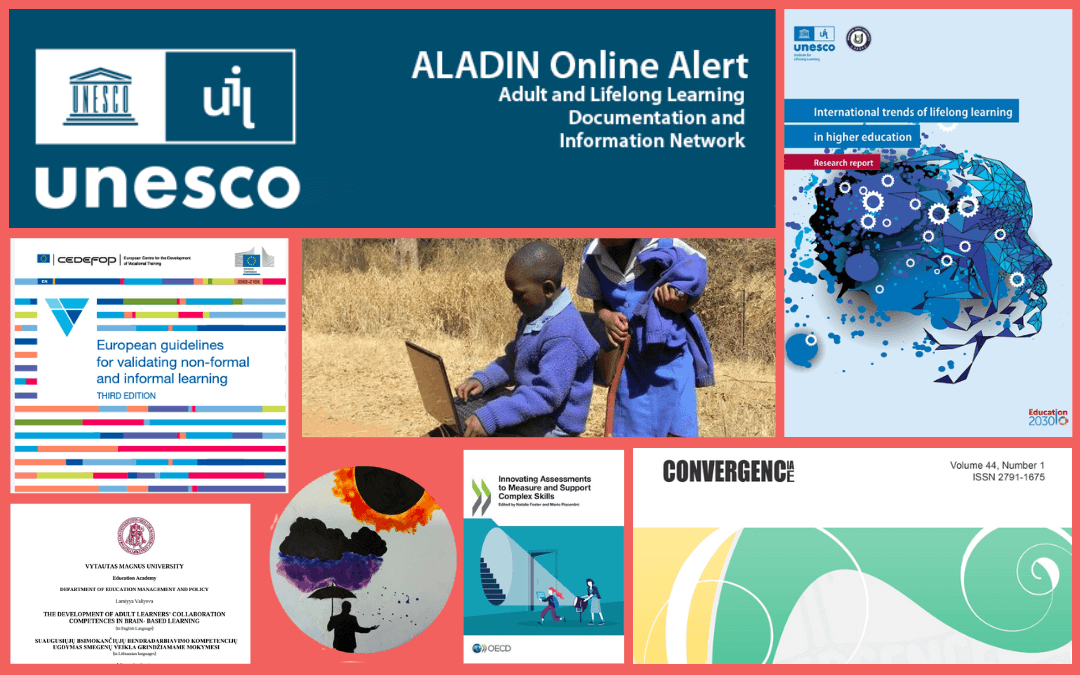 ALADIN ozavešča o izidu poročil o mednarodnih trendih vseživljenjskega učenja v terciarnem izobraževanju, vključevanju krepitve kompetenc za IKT v izobraževanju v Afriki, 3. izdaji Cedefopovih Evropskih smernic za vrednotenje neformalnega in priložnostnega učenja in publikaciji OECD o inovativnem pristopu k merjenju in podpori spretnosti.
