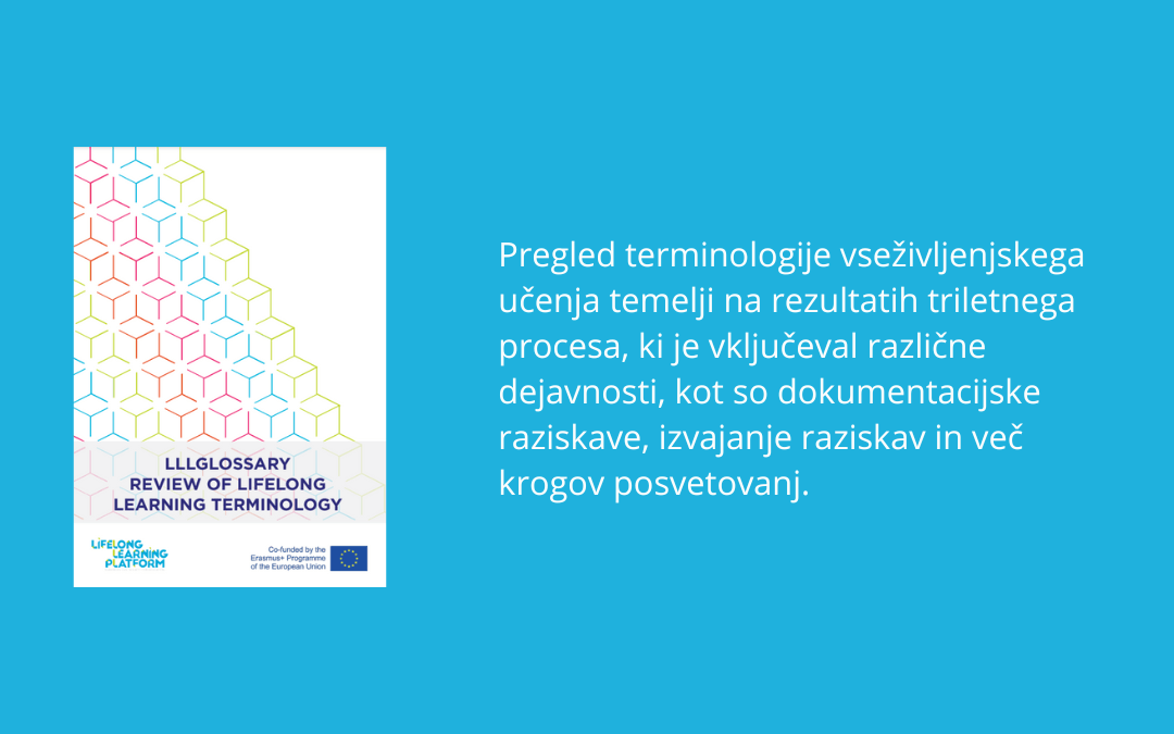 Platforma za vseživljenjsko učenje (LLLP) je s podporo evropskih in mednarodnih strokovnjakov pripravila slovar z naslovom LLLGlossary – Review of Lifelong Learning Terminology. Vsebuje ključne izraze, povezane z izobraževanjem in usposabljanjem v vseživljenjskem učenju.