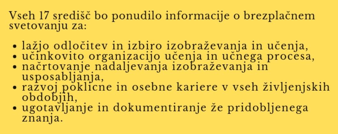 Z dogodki v teh treh dneh želimo povečati prepoznavnost središč ISIO v lokalnem okolju in odraslim predstaviti, kakšne možnosti svetovanja in podpore središča ponujajo.