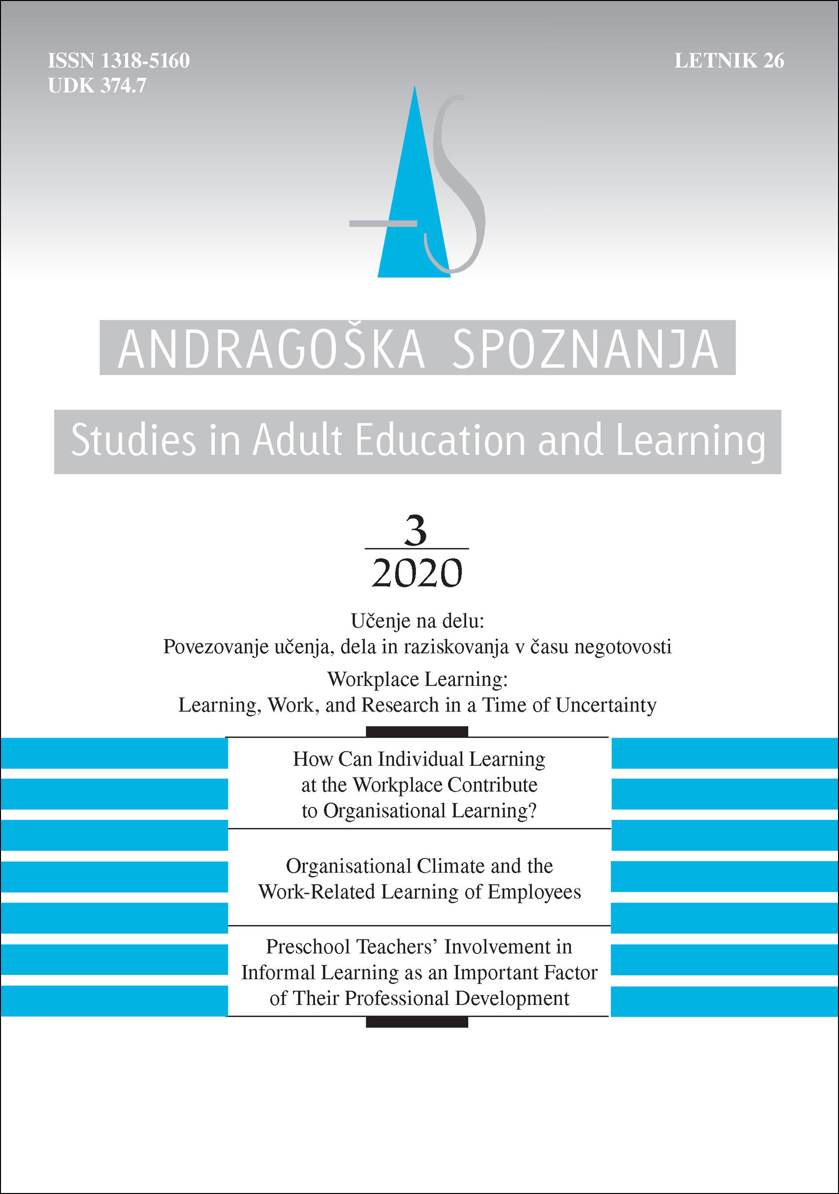 V zadnjem tednu oktobra je izšla tretja številka Andragoških spoznanj v letu 2020. Osrednja tema, na katero so vezani tematski članki, je učenje na delu: povezovanje učenja, dela in raziskovanja v času negotovosti.