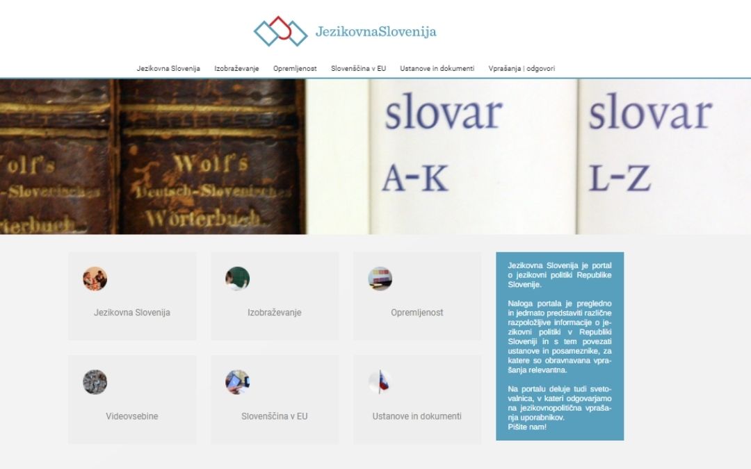 Radi bi vas opozorili še na portal Jezikovna Slovenija, kjer so pregledno in jedrnato predstavljene različne informacije o jezikovni politiki v Republiki Sloveniji. Naloga portala je povezati ustanove in posameznike, za katere so obravnavana vprašanja relevantna.