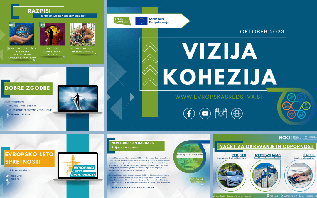 V najnovejši številki Vizije kohezije ne spreglejte novih in aktualnih javnih razpisov. Predstavljajo dobre zgodbe, tokrat: Krajinski park Goričko, ohranjanje zgodovine v trgu Kozje in Center o delfinih, predstavljajo projekta SPIN in ASI, napovedujejo dogodke in prinašajo zanimive novice s področja evropske kohezijske politike.