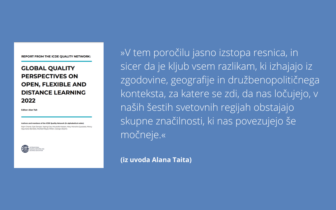 Poročilo je uredil Alan Tait, zaslužni profesor z britanske Open University, ki je od leta 2016 pa do konca lanskega leta opravljal funkcijo predsednika mreže za kakovost ICDE.