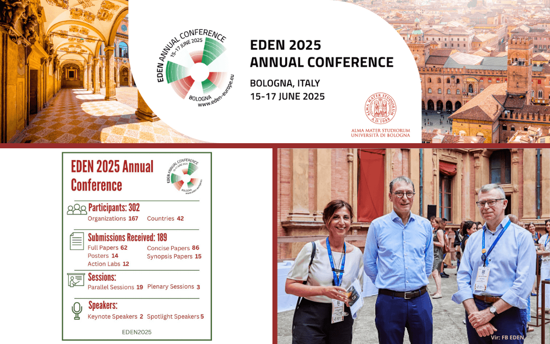 Junija je Bologna gostila letno konferenco Evropske mreže za izobraževanje na daljavo – EDEN. Tema konference je bila »Oblikovanje prihodnosti izobraževanja v dobi umetne inteligence, ki omogoča vključevanje, inovacije in etično rast«.