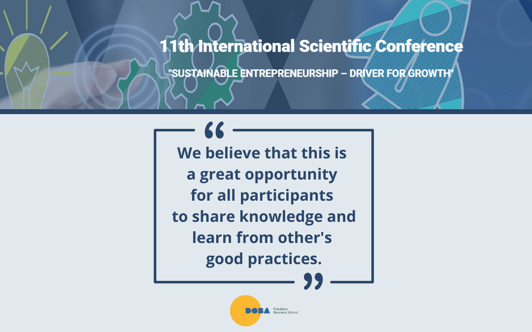 11. mednarodna spletna znanstvena konferenca, ki jo organizira DOBA Fakulteta, bo 16. novembra 2022 ponovno povezala akademike in predavatelje, strokovnjake in študente iz Slovenije in tujine. Tokratna tema je »Trajnostno podjetništvo – gonilo rasti«.