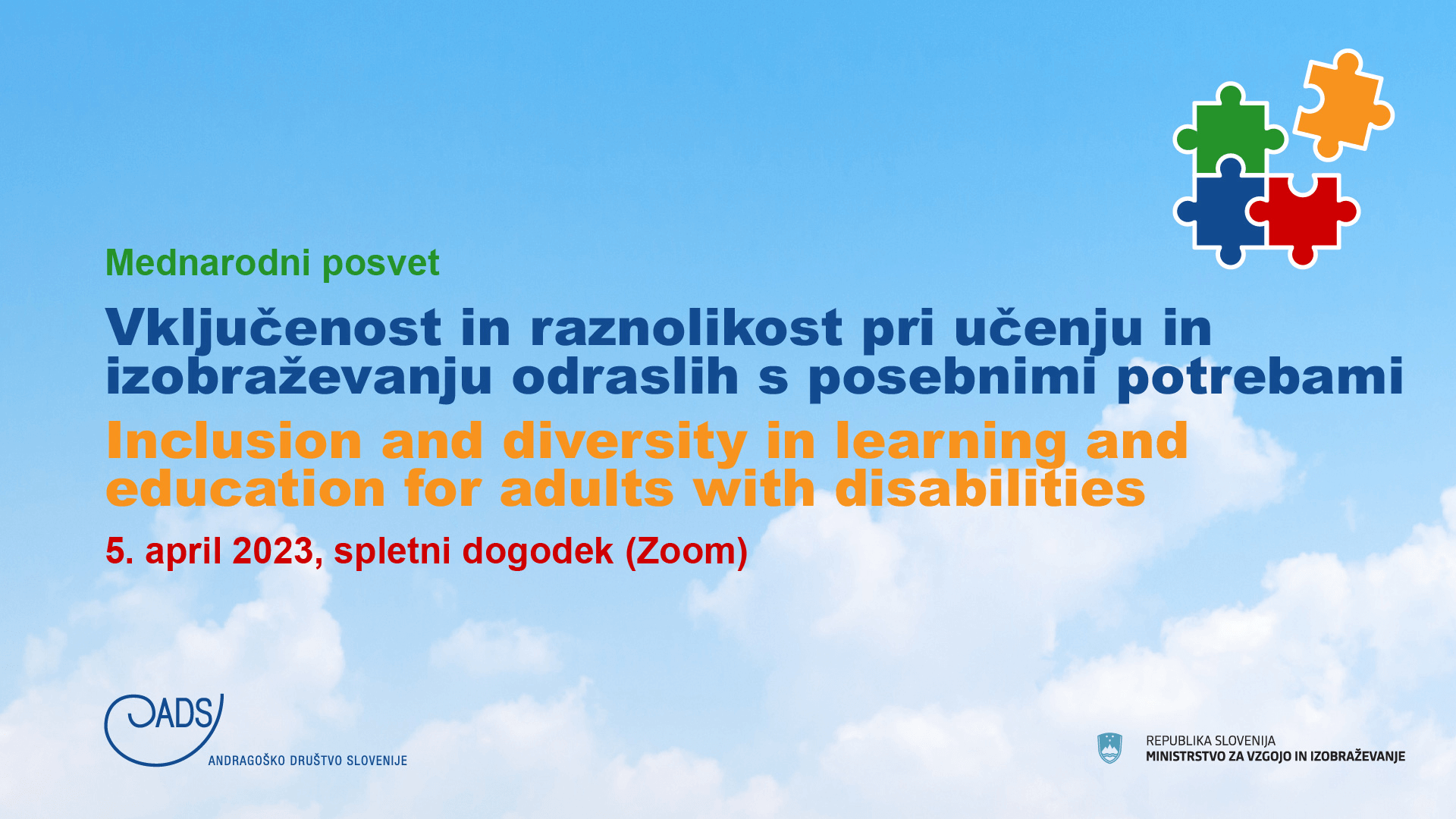Izkušnje in spoznanja članov društva ADS na tem področju bi radi delili širše. V ta namen organizirajo mednarodni posvet z naslovom Vključenost in raznolikost pri učenju in izobraževanju odraslih s posebnimi potrebami, ki bo 5. aprila 2023 med 9. in 14. uro potekal preko spleta (Zoom).