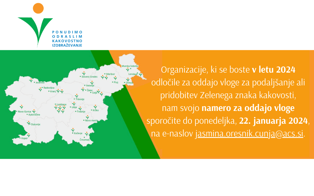 Povabilo organizacijam k podaljšanju ali pridobitvi zelenega znaka kakovosti v letu 2024