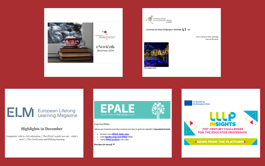 V drugi polovici decembra je izšlo kar nekaj izdaj novičnikov, ki jih sicer spremljamo med letom. Ker so v naših poštnih nabiralnikih že januarske številke, kratko povzemamo vsebine zadnjih izdaj preteklega leta.