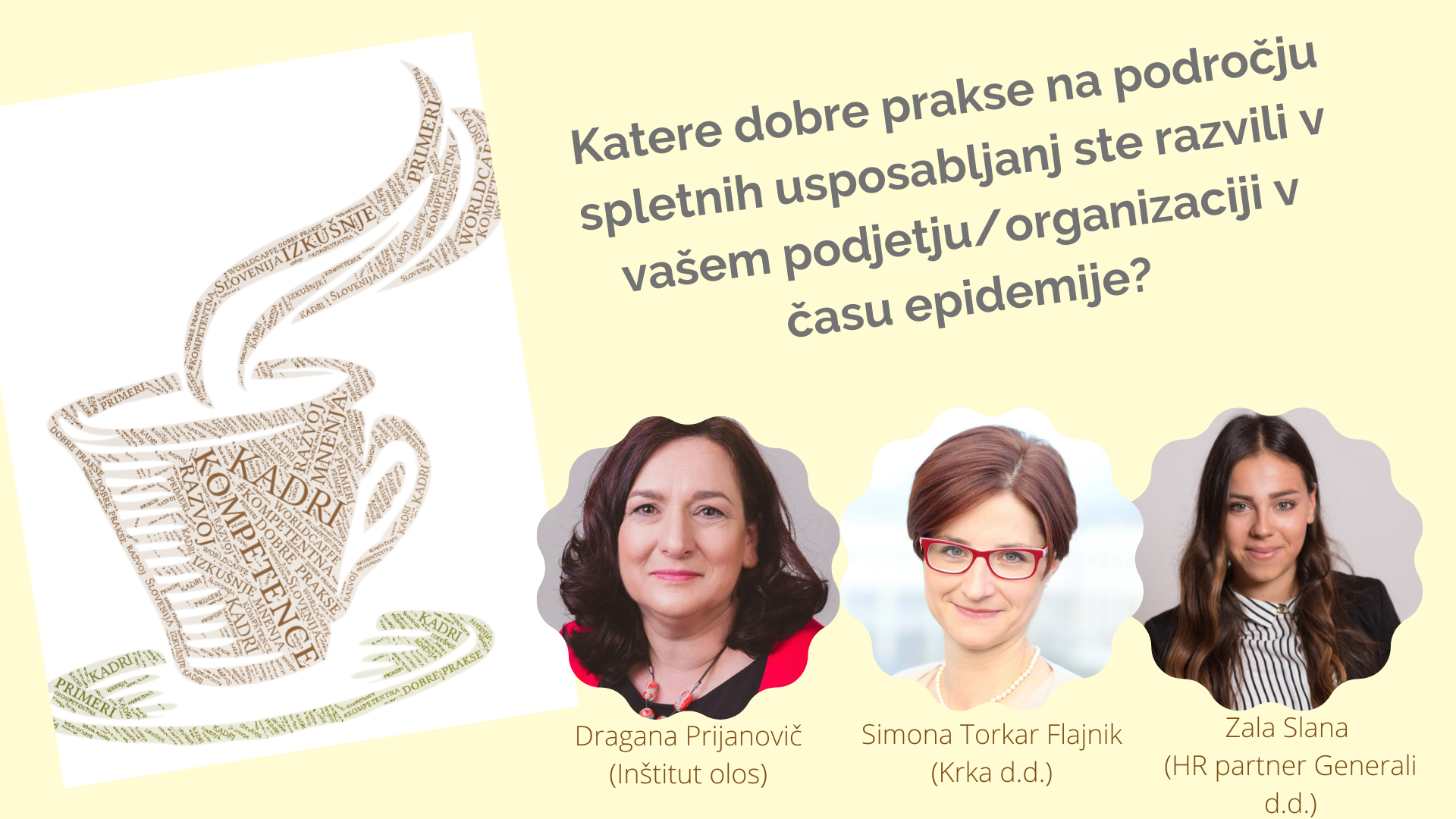 V uvodnem delu boste spoznali dobri praksi proizvodnega in storitvenega podjetja. Z vami bosta Simona Torkar Flajnik, vodja službe Izobraževanje in razvoj kadrov v podjetju Krka d.d., in Zala Slana, HR Business Partner v podjetju GENERALI zavarovalnica, d.d..