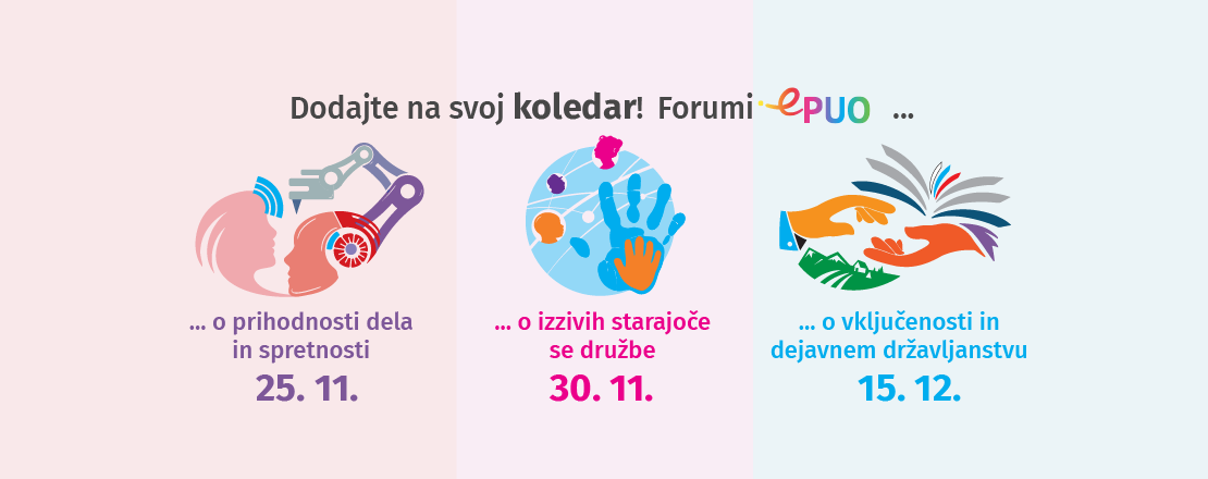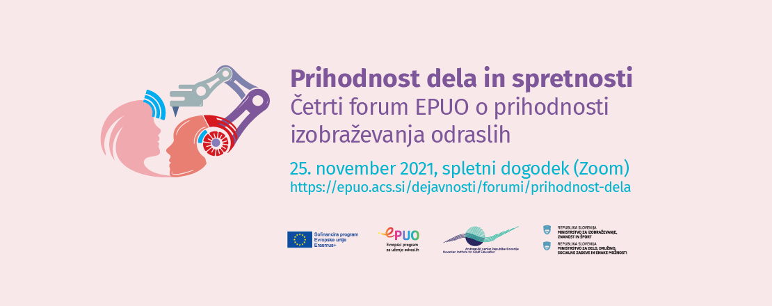 Andragoški center Slovenije vabi 25. novembra na četrti virtualni forum projekta EPUO. Forumu o prihodnosti dela in spretnosti pripravljamo ga v sodelovanju z zanimivimi govorci.