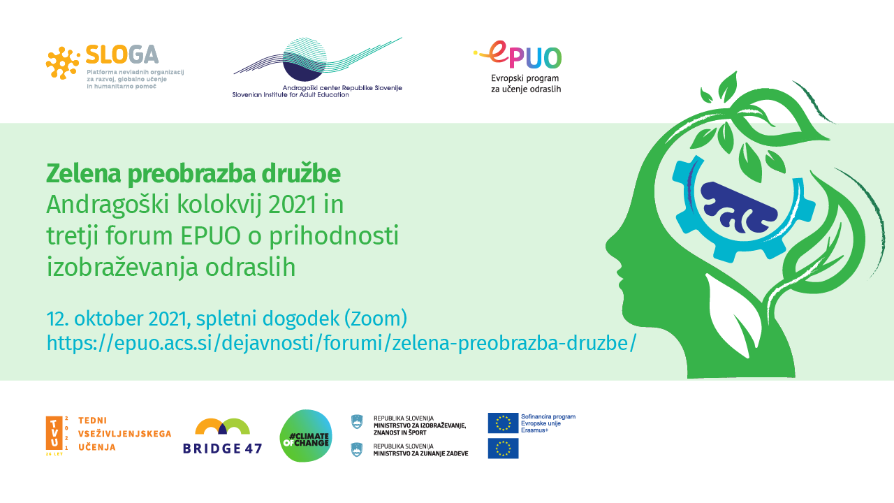 Trajnostni razvoj potrebuje učenje in izobraževanje (odraslih)! – to je premisa tokratnega foruma projekta EPUO o prihodnosti izobraževanja odraslih, ki je združen z jubilejnim, 25. Andragoškim kolokvijem – strokovnim dogodkom letošnjih Tednov vseživljenjskega učenja 2021.