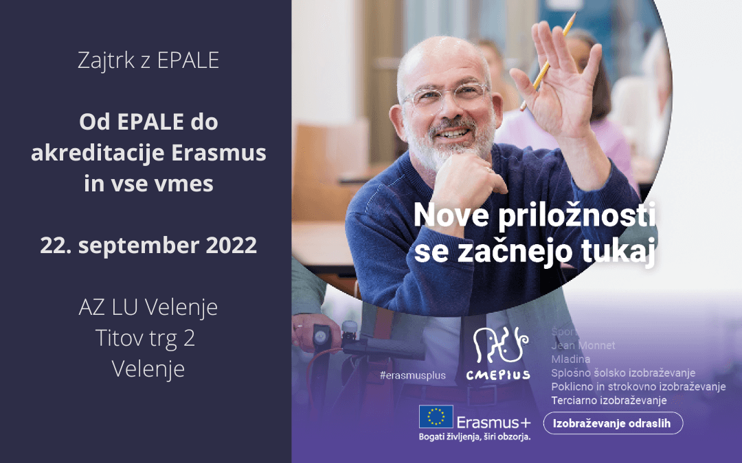Andragoški zavod ljudska univerza Velenje bo v četrtek, 22. septembra 2022, med 9. in 15. uro gostil Zajtrk z EPALE.