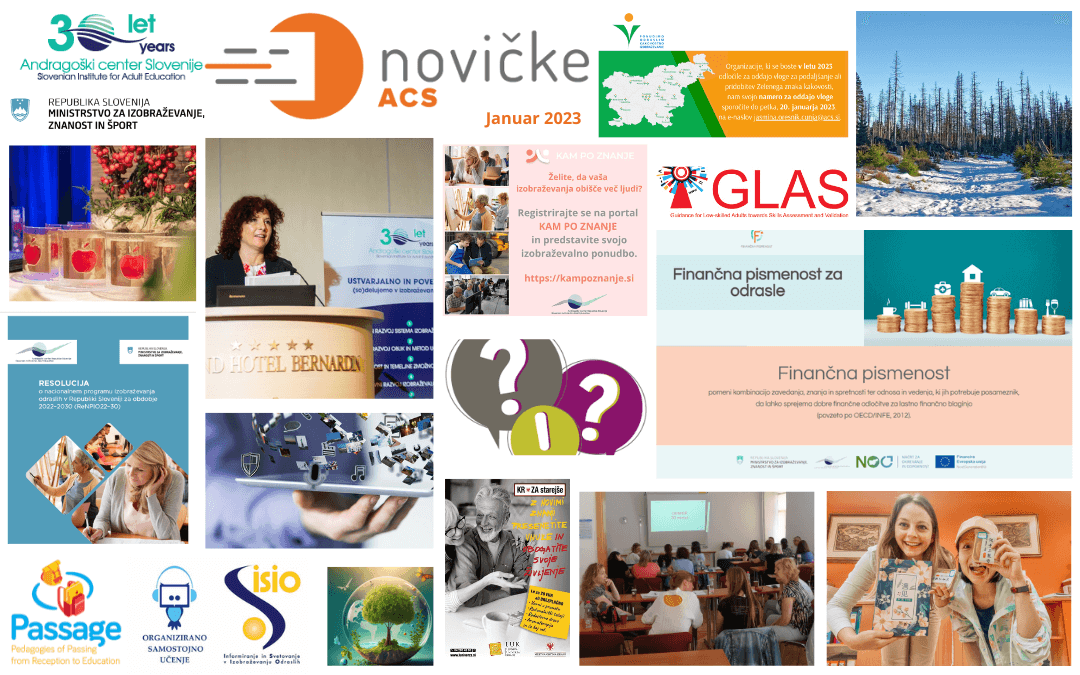Med domačimi novicami izpostavljamo vabilo k oddaji vloge za pridobitev zelenega znaka kakovosti, širitvi portala Kam po znanje in dogajanju v projektu Finančna pismenost za odrasle.