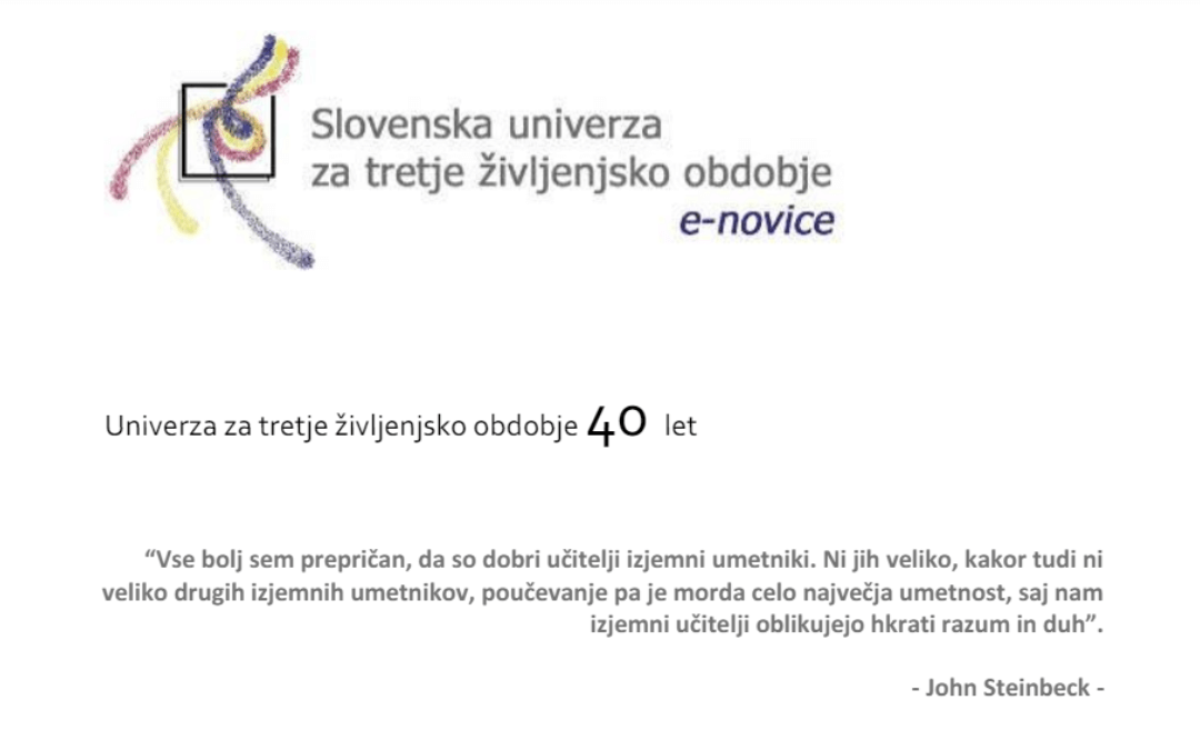 Pišejo tudi o univerzah za tretje življenjsko obdobje, ki letos slavijo jubileje. SUTŽO deluje že 40 let, UTŽU Celje praznuje 30-letnico delovanja, UTŽO Grosuplje pa slavi 20 let.