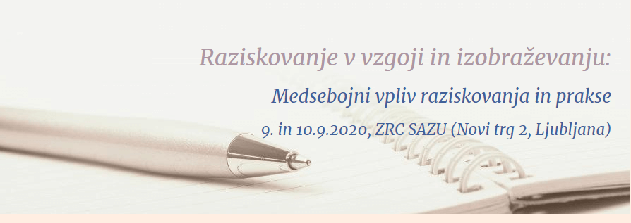 Pedagoški inštitut (PI), Slovensko društvo raziskovalcev na področju edukacije (SLODRE) ter Center Republike Slovenije za mobilnosti in evropske programe izobraževanja in usposabljanja (CMEPIUS) vabijo na 5. znanstveno konferenco Raziskovanje v vzgoji in izobraževanju, ki letos nosi podnaslov Medsebojni vpliv raziskovanja in prakse. Konferenca bo potekala 9. in 10. septembra 2020 v prostorih Znanstveno raziskovalnega centra SAZU (Novi trg 2, Ljubljana).