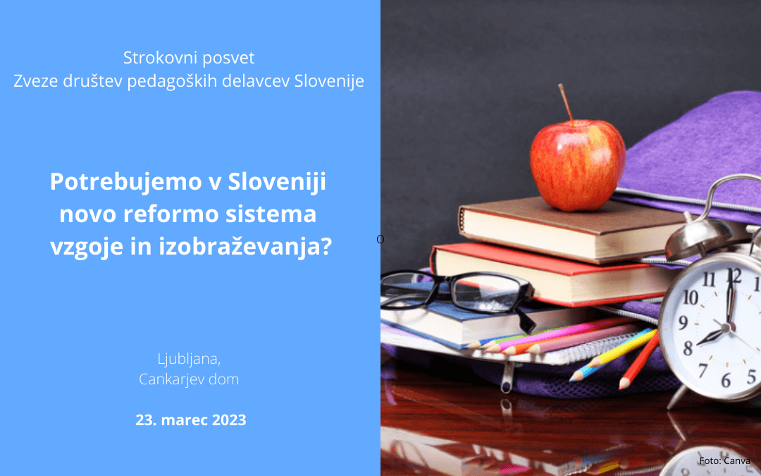 Zveza društev pedagoških delavcev Slovenije (ZDPDS) je včeraj, 23. marca 2023, v Cankarjevem domu v Ljubljani organizirala strokovni posvet z naslovom Potrebujemo v Sloveniji novo reformo sistema vzgoje in izobraževanja?