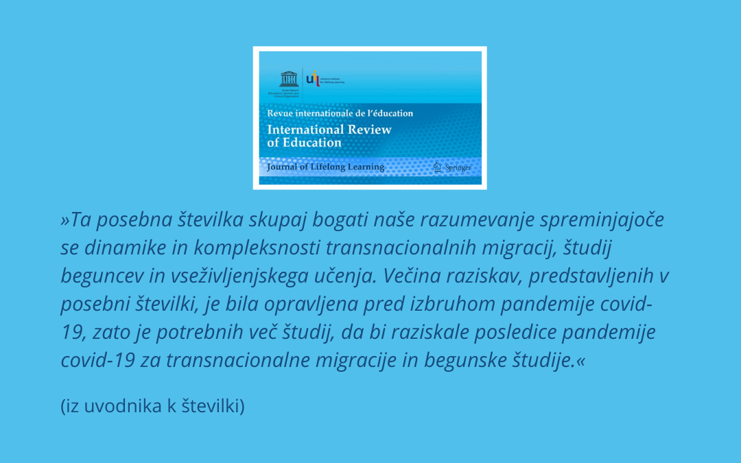 Namen devetih izjemnih člankov nove tematske številke revije International Review of Education – Journal of Lifelong Learning (IRE) je premislek o odnosu med mobilnostjo, znanjem, raznolikostjo, vključevanjem in vseživljenjskim učenjem v kontekstu transnacionalnih migracij.
