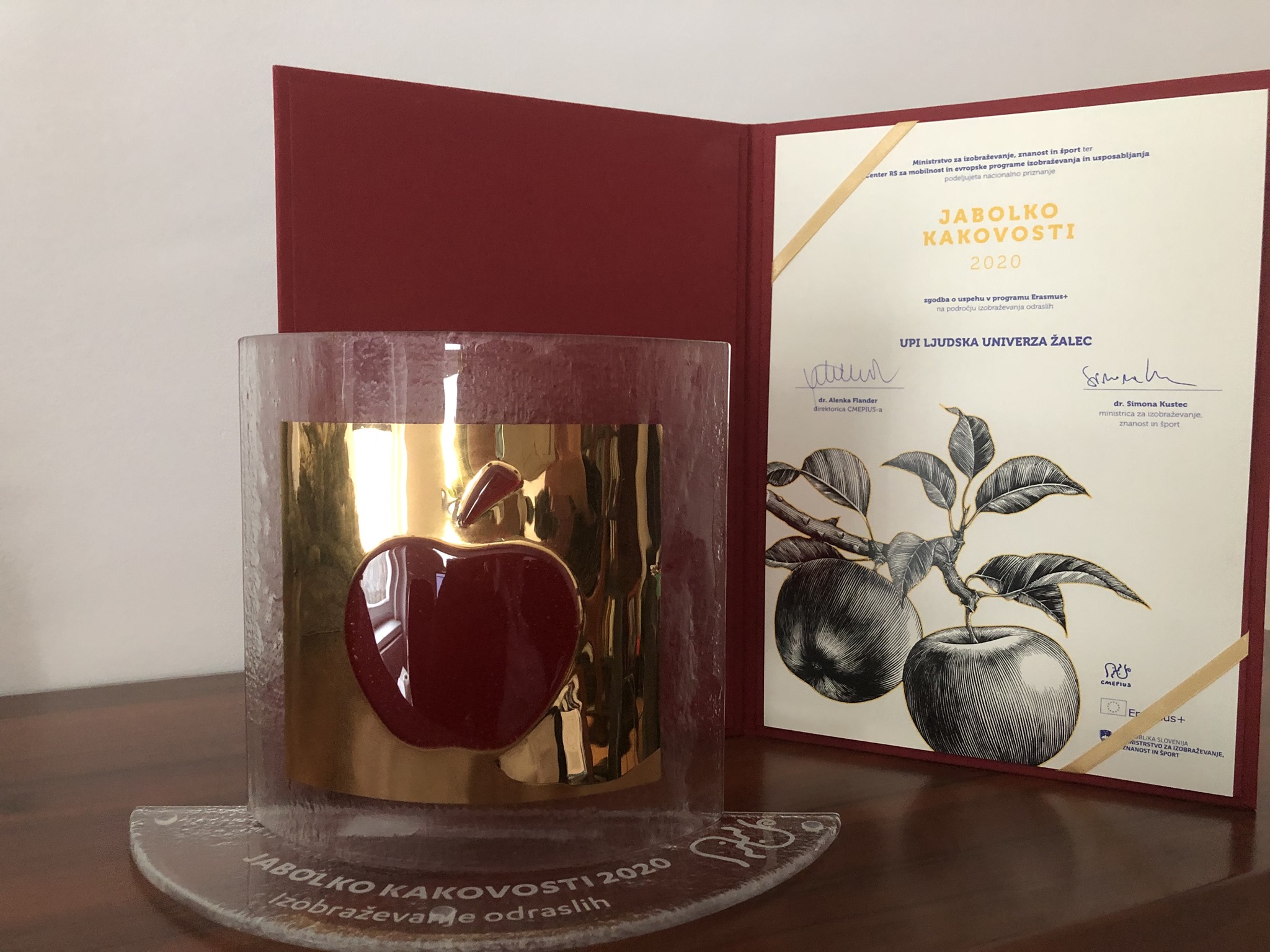 Prejemnica jabolka kakovosti 2020 za področje izobraževanja odraslih je letos UPI Žalec s projektom Kombinirano učenje (Quality Blended Learning).