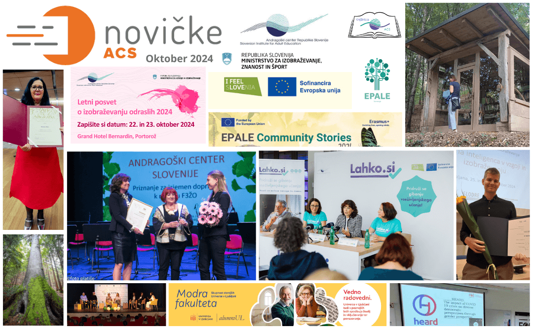 Veselimo se nove rubrike Lahko.si, v kateri objavljamo prispevke, povezane z istoimenskim gibanjem in projektom Ozaveščanje za vseživljenjsko učenje. Praznujemo, saj bil prepoznan izjemen doprinos Andragoškega centra Slovenije k razvoju F3ŽO. Čestitamo sodelavki Nataliji Žalec ob prejemu državne nagrade za izjemne dosežke v vzgoji in izobraževanju. Načrtujemo naše stanovsko srečanje – danes je še čas za prijavo na Letni posvet o izobraževanju odraslih.