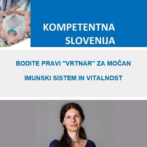 V sklopu Kompetentne Slovenije pripravljajo delavnico Bodite pravi ”vrtnar” za močan imunski sistem in vitalnost. Z vami bo Maja Kosmačin, tui-na terapevtka in svetovalka za zdravo, vitalno in energetsko polno delovno okolje.