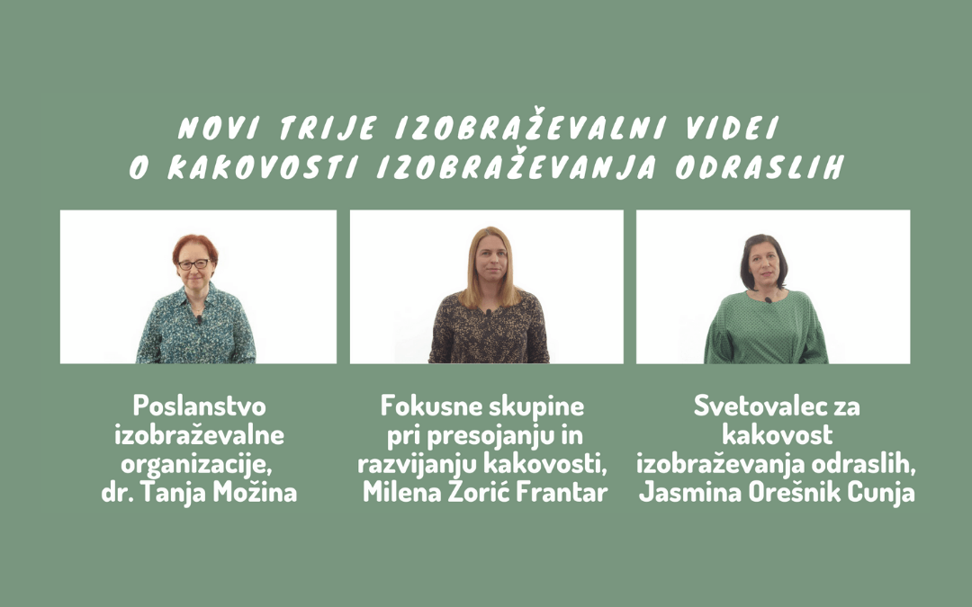 V zbirki izobraževalnih videov o kakovosti izobraževanja odraslih smo pripravili tri nove: