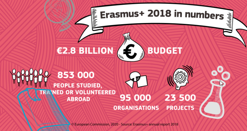 V tem letu je Evropska unija v program vložila rekordnih 2,8 milijarde evrov, kar je 10 % več kot leto poprej. S tem so se študentom, vajencem, učiteljem in mladinskim delavcem ponudile številne nove priložnosti za krepitev kompetenc in pridobivanje neformalnih znanj.