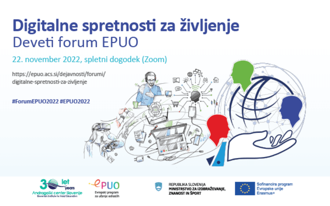 Forume, ubrane na aktualne družbene teme, ki jih pripravlja Andragoški center Slovenije v projektu Uresničevanje Evropskega programa za učenje odraslih (EPUO) izobraževalci odraslih v Sloveniji prav gotovo poznate. V letu 2021 smo izpeljali šest Forumov o prihodnosti izobraževanja odraslih, v letošnjem letu pa še štiri o spretnostih za življenje.